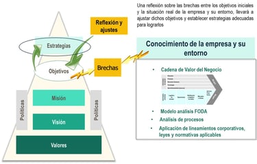 Una reflexión sobre las brechas entre los objetivos iniciales y la situación real de la empresa y su entorno, llevará a ajustar dichos objetivos y establecer estrategias adecuadas para lograrlos