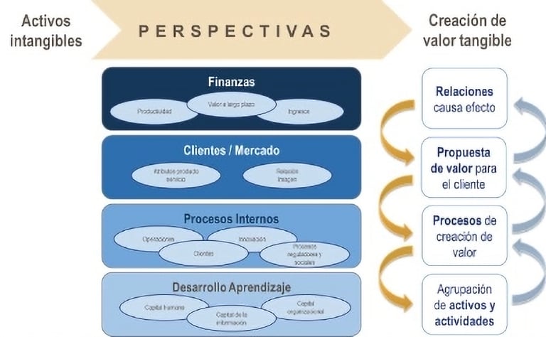 La metodología Balanced Scorecard, o Cuadro de Mando Integral, como se conoce en español, es mundialmente reconocida por su aplicación en el análisis estratégico de una empresa. Se basa en cuatro perspectivas, dependiendo una de la otra: Finanzas, Clientes y mercado, Procesos internos, y Desarrollo y aprendizaje. Dentro de esta última se analiza el Capital Humano, el Capital de la organización y el Capital de los servicios de información. En cuanto al Capital Humano se establecen los objetivos que debe definir la empresa en relación con las personas que trabajan en ella, puesto que son quienes ejecutan los procesos para elaborar los productos de la empresa que serán adquiridos por los clientes en el mercado, siempre competitivo. Y si todo esto funciona bien, se recibirán beneficios financieros, que son parte de los objetivos fundamentales de una empresa comercial. Esto aplica igualmente a las organizaciones sin fines de lucro, pues los objetivos estarán repartidos entre los financieros para su funcionamiento y los beneficiarios o clientes, en el mercado adecuado. En ambos casos, dentro de la perspectiva Desarrollo y Aprendizaje, los objetivos del Capital Humano son similares.