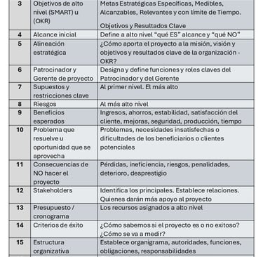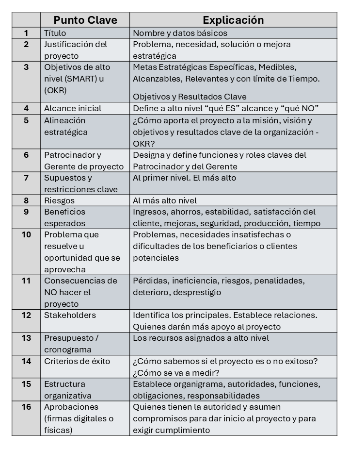 Para que un Project Charter cumpla su propósito, es importante incluir tantos detalles como sea posible, obviamente desde la visión estratégica, inicial y general del proyecto.